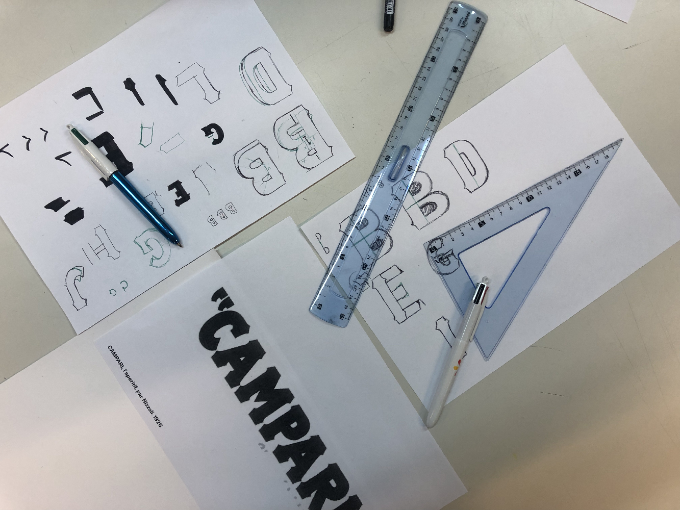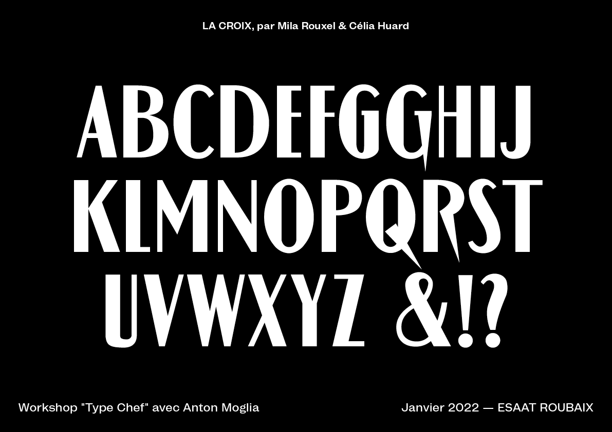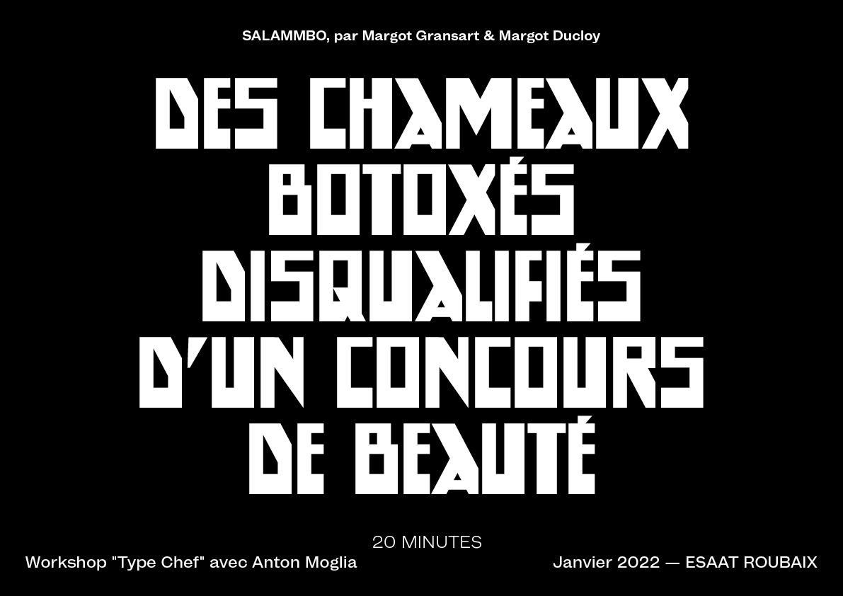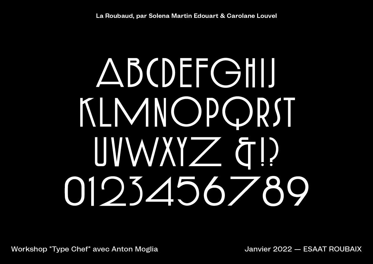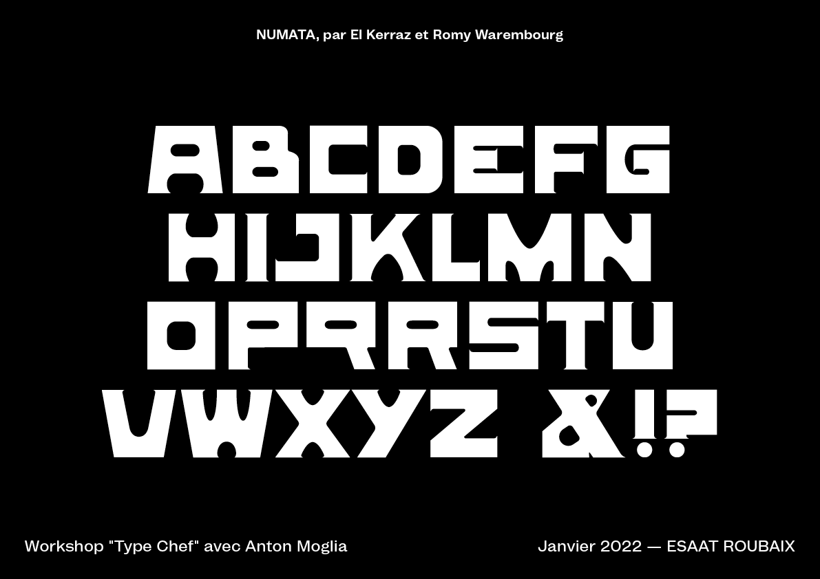 TypeChef is a workshop designed to understand the alphabet as a system. In this workshop, you're invited to reinvent a vintage typographic poster, just like one would reinvent a classic dish. In doing so, you'll explore and deconstruct the shapes and structure of the alphabet to better create your own recipe. Initially designed for Graphic Design students, this workshop has been reimagined to satisfy all typography lovers. Put on your apron and grab your utensils to join this exciting typographical experience!